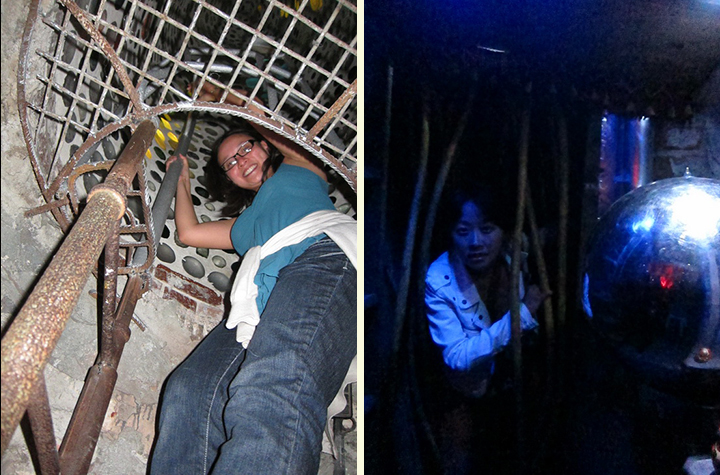 One of the most memorable things that we did in Berlin was the Peristal Singum labyrinth. The labyrinth was built by hippies in what seems like a large abandoned apartment building. Interestingly, the labyrinth is next to a bar/dance club called the Salon Zur Wilden Renate. You order drinks and pay the person at the bar 10 euros to go into the labyrinth. You then sit in the outside courtyard and enjoy your drinks, and eventually, someone comes and brings you into the labyrinth.