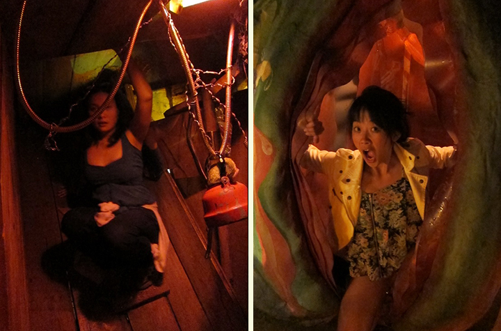 It was eerie inside because parts of it were pitch black. There was also a freaky soundtrack of creeky noises and crying babies playing the entire time.