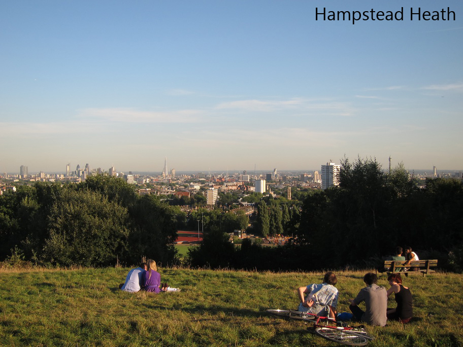 Another close by park is Hampstead Heath, which covers about 790 acres. It is one of the highest points in London and affords a glorious view of the city, which is actually protected by law.