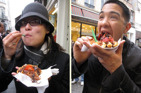 2. Liege Waffles – Unlike the waffles served in the States (which are known as Brussels waffle), liege waffles are richer, denser, sweeter, and chewier. They are sold throughout the streets of Brussels, and you can add a variety of toppings from strawberries, bananas, nutella, to whipped cream. I couldn’t get enough of these waffles!