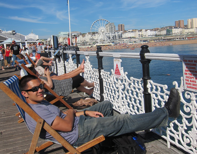 Oddly, Brighton doesn’t have sand but has pebbles instead. I couldn’t imagine actually lying on the pebbles but people were doing it. They were also pretty drunk so that may have been a contributing factor.