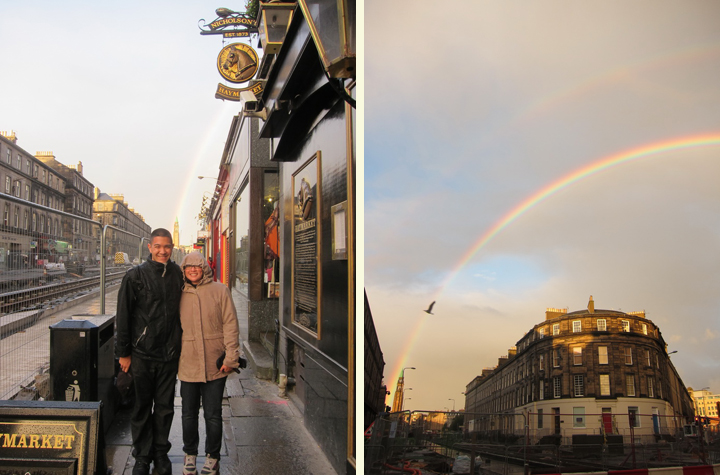 As we walked home on our second day in Edinburgh, it rained a little bit. But to compensate for it, there were a beautiful double full-arch rainbow. Oh, how I adore Edinburgh!