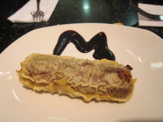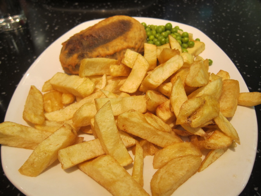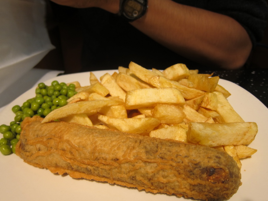 Our delightful waitress at Nicholson’s Pub informed us that we could get deep-fried haggis and Mars bars at a chipper called the City Restaurant. It was indeed deep-fried. Mr. Selfish ordered the spicy haggis, and I got the regular kind. Both were good but the deep-fried-ness may be a little much. On the other hand, the deep-fried Mars bars was heavenly.