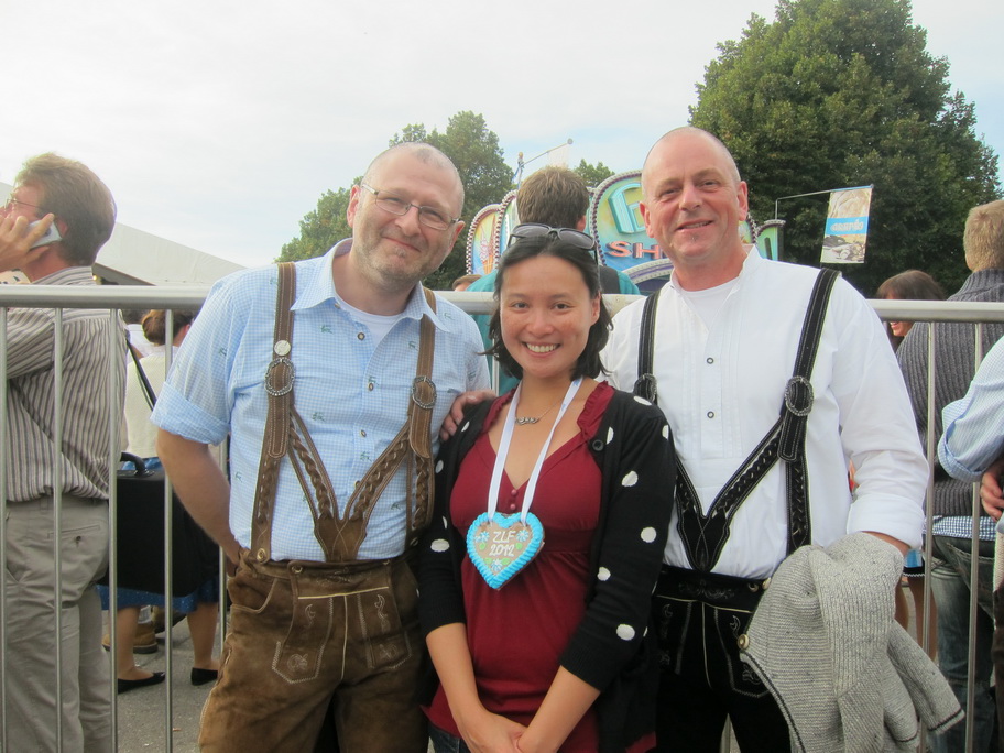 We drank waaaaaay too much beer. Of course, we had a wonderful time. On the way out, I had to take a picture with some men in lederhosen.