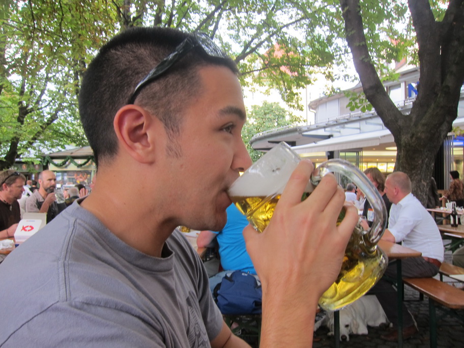 Nearby the Rathaus is Viktualienmarkt, which dates back to 1807 and is the oldest air market in Munich. We had a delicious lunch and partook of some beer in the beer garden. Apparently, the Bavarians enjoy their beer regardless of whether they are at Oktoberfest. Also, per the advice of our German friends, Mr. Selfish and I also ate a pretzel with our beers.
