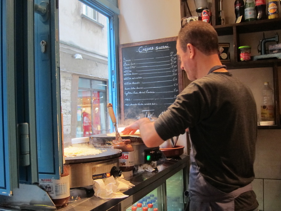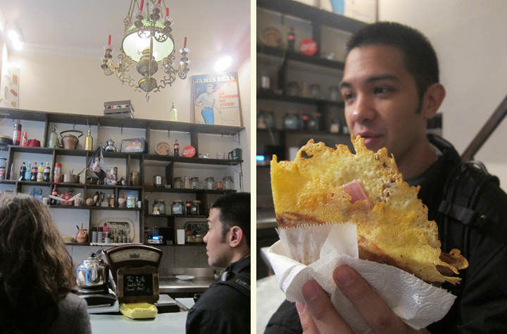 Second, there is a crepe shop just down the way from L’As Du Fallafel. I don’t know the name of it but the shop is a light color blue. We had a cheese crepe that was perfectly cooked so that the cheese melted and became a crispy shell of deliciousness. I used to love the sweet crepes but this little shop may have turned me into a savory crepe lover.