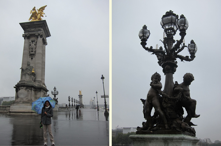 I feel that I have first-hand knowledge concerning Paris in the rain since it has rained for many, many a days since we started living here.  I even took photographs of Pont Alexander III, which is between the 7th and 8th Arrondissements, to compare whether Paris is indeed the most beautiful in the rain.