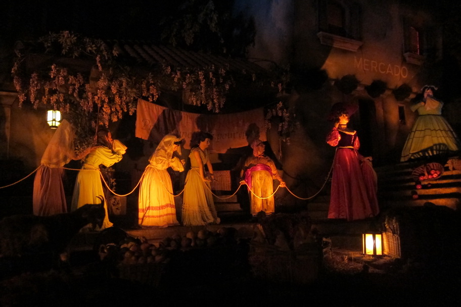 I thought that the Pirates of the Carribean was different – not better or worst. There were some of the same scenes, such as the “Dead Men Tell No Lies,” the prison inmates trying to tempt the dog with the keys, and the selling of women bit. But there were also differences – particularly the scenes when the town was on fire were well done and the scenes with the skeletons at the end. Notably, Johnny Depp is absent from Pirates at DLP. They must have just added him to the US parks.