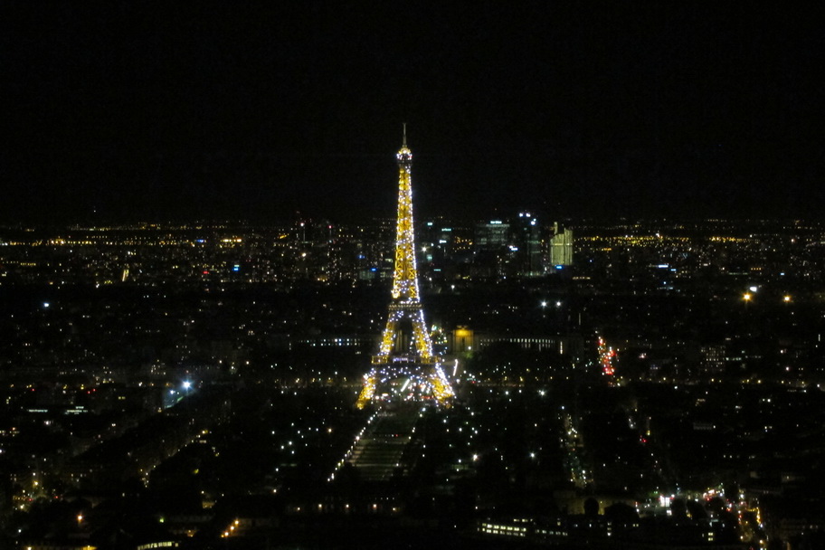 However, you can walk up three levels to the roof-top terrace, which is dark and is not entirely covered with glass. The plus is you can take beautiful photos, of course. The minus is that it is cold and windy at the top. Mr. Selfish and I stayed on the terrace until 8pm, so that we could see the Eiffel Tower lit up.