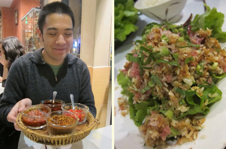 The most memorable meal we had was at Lao Lane Xang, which is primarily a Laotian restaurant. In fact, this restaurant is so good that there are two on the same street – right across the street from one another. Despite having two locations on the same street, we still waited for about 45 minutes for a table on a Thursday night.