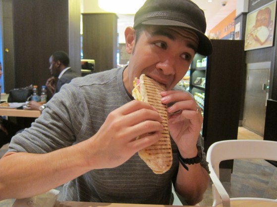 There are 18 Eric Kayser stores in Paris but 80 stores worldwide. Mr. Selfish and I will certainly be looking for Eric Kayser stores in our travels. He is after all the ambassador of French bread to the world. Now for some shots of us enjoying Eric Kayser.