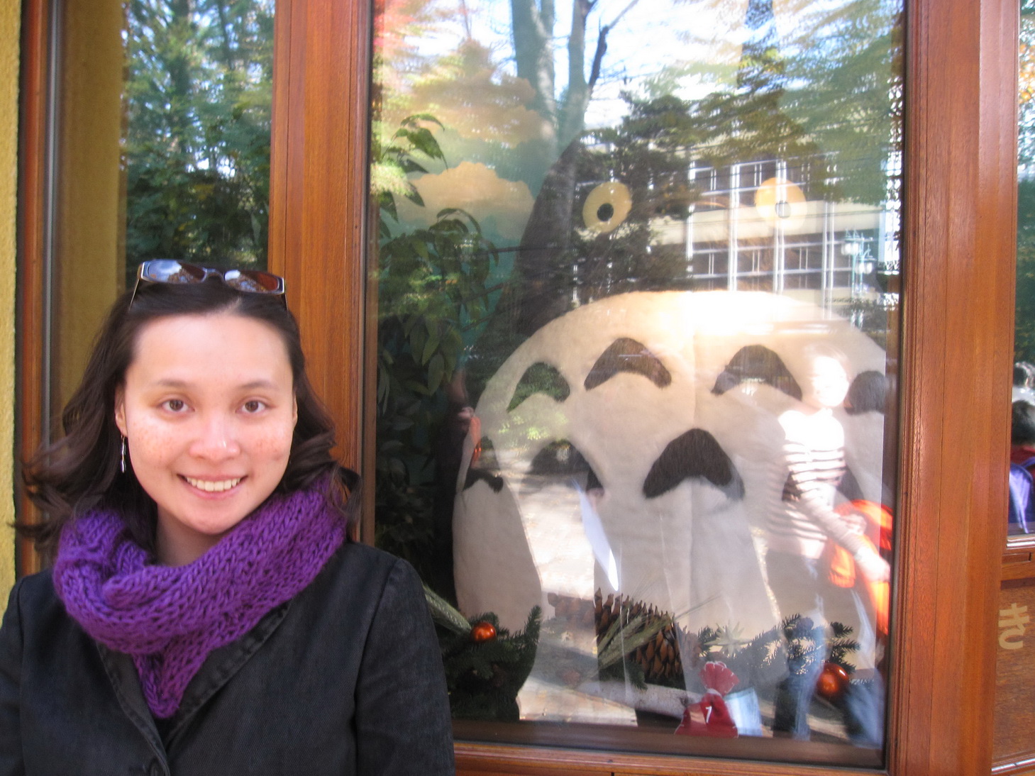 Of course, Mr. Selfish also took a couple of incognito photos inside. I really wanted to hug the Catbus plush but only children are allowed to touch it. We also saw models and concept art, and there were nice large windows with detailed paintings of landscapes from the Ghibli films.