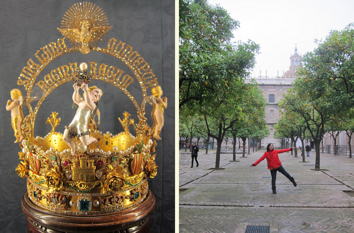 Of course, Mr. Selfish and I took lots of photographs inside the cathedral. The stain glass windows were quite nice, and the tomb of Christopher Columbus is inside. We also saw one of the biggest pearls in the world – it is the cherub on the crown.