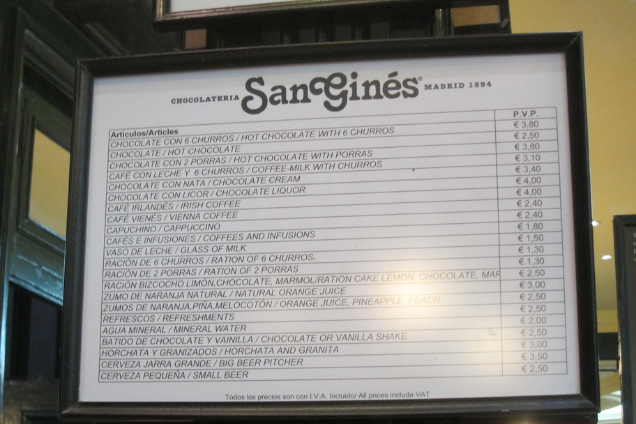 We then tried two places in Madrid. The first was San Gines, which is an institution for hot chocolate and churros in Madrid.