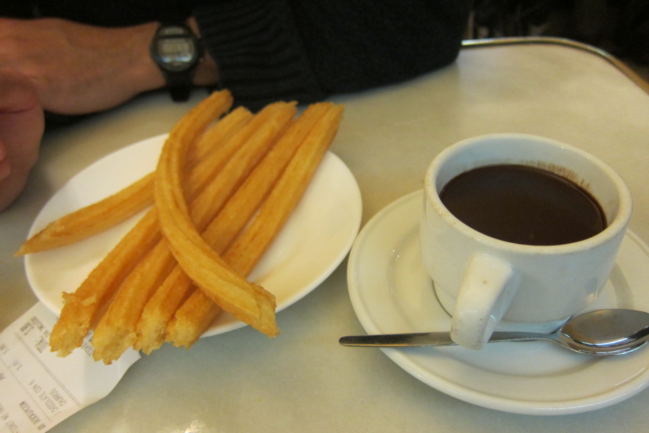 The first place I tried it was Casa Sampaka in Barcelona. The hot chocolate was very good and dark, but the churros were a bit on the dry side.
