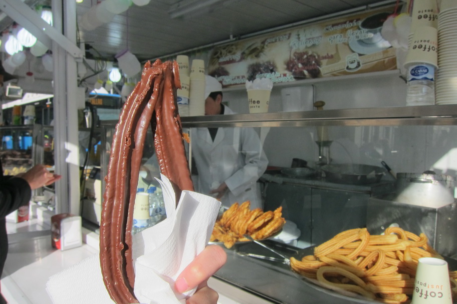 When I found out that hot chocolate and churros were a specialty in Spain, I knew that I would be sampling quite a few. Although the hot chocolate in Spain is not as good as the hot chocolate in Paris, the pairing with churros is quite nice.