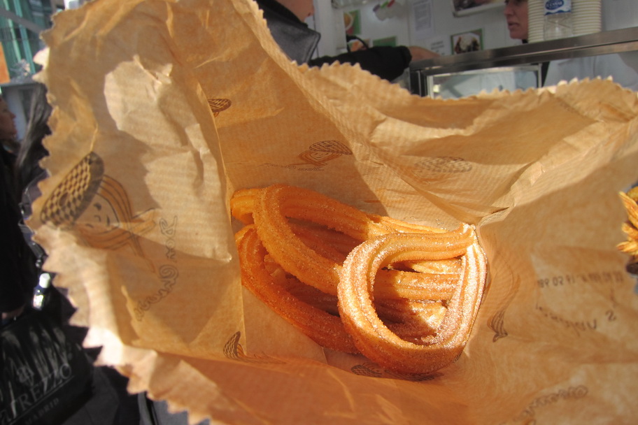 Finally, we tried a little outdoor stand in Madrid. These churros were covered in sugar and cinnamon. We found a winner for Mr. Selfish. Unfortunately, I didn’t think the hot chocolate was nearly as good.