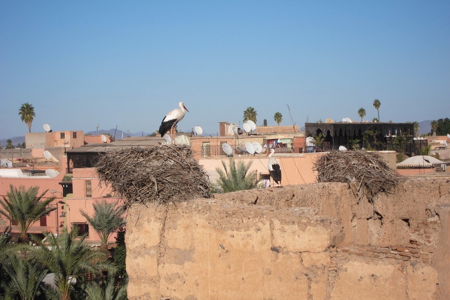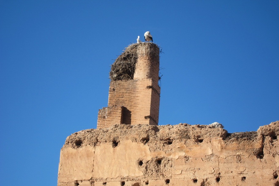 The top of the El Badi Palace had huge storks with their nests. These storks were probably four feet tall at least.