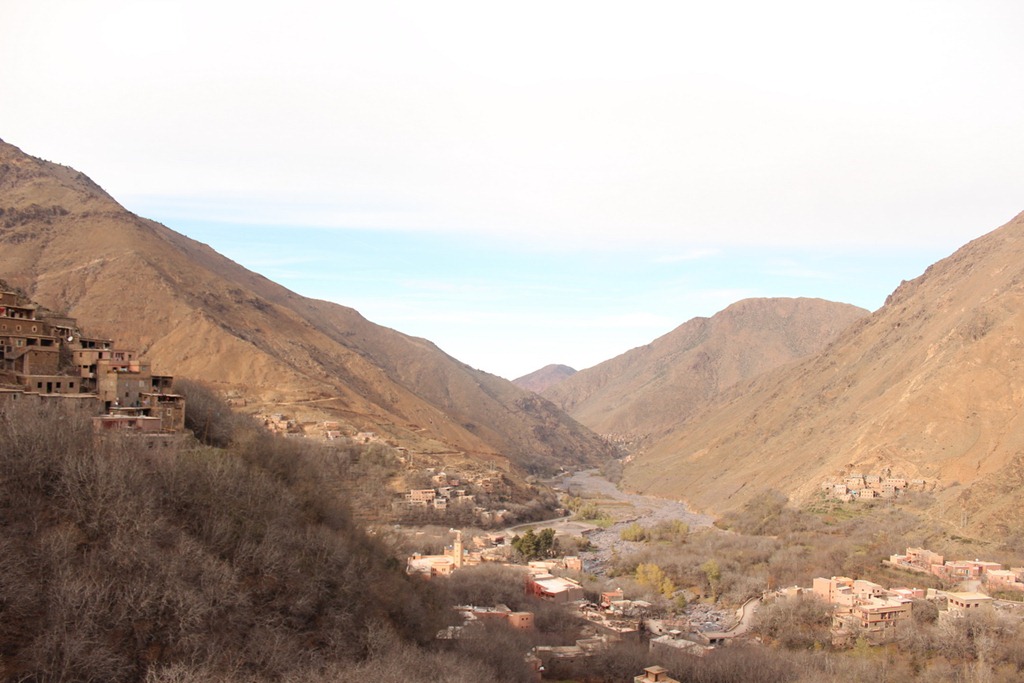 After our camel trek outside of Marrakech, we enjoyed lunch at a rustic riad near Jbel Toubkal, which is the tallest mountain in north African and the second tallest in Africa. It is more than 13,000 feet tall. The riad was nicely nestled in the valley near the town of Imlil. We ate a hearty meal of salad and tangine in order to prepare for our hike in the valley.