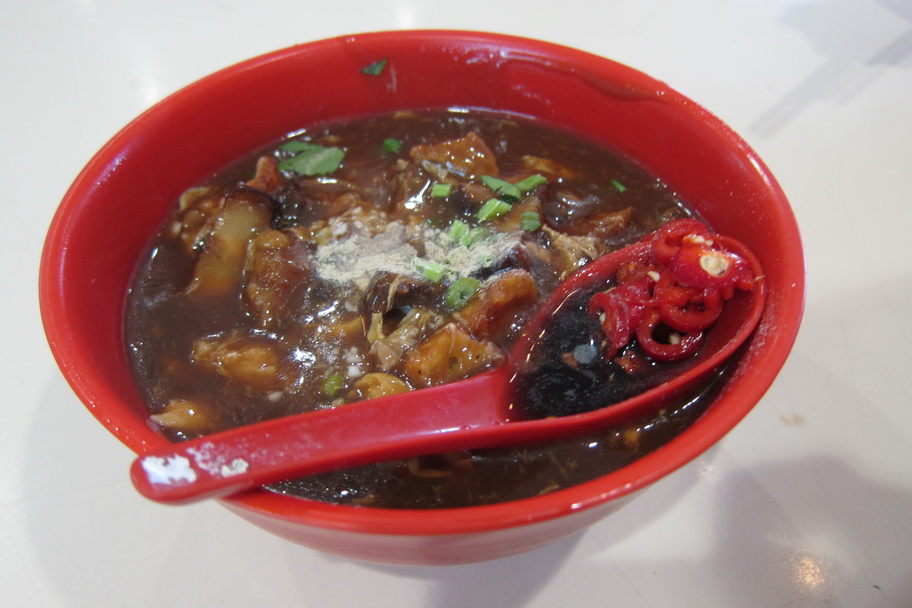Second, we tried Yuan Chun Famous Lor Mee. Lor mee is a Chinese noodle dish in a thick brown gravy with fish cakes. I never had a noodle dish like this before and although I enjoyed the experience, I don’t know if I would get it again. It only cost $3.00, so it was worth it for the experience.