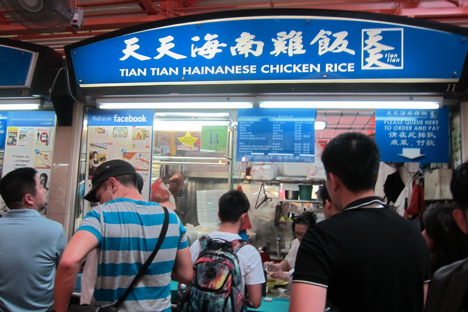 The Hainanese Curry Rice was pretty good but then I saw much longer line at a stand that had photos of Anthony Bourdain. It turns out that he had visited the Tian Tian Hainanese Chicken Rice stand on No Reservations. He highly recommended it, so we had to try it too. We actually liked it so much that we went back and got a second portion. The preparation for Hainanese chicken rice uses a lot of pork and chicken bone stock. The whole chicken is boiled in the broth, and then the rice is cooked in a separate broth. This preparation makes the chicken quite juicy and succulent and the rice quite flavorful as well. It was heaven for only $4.20.