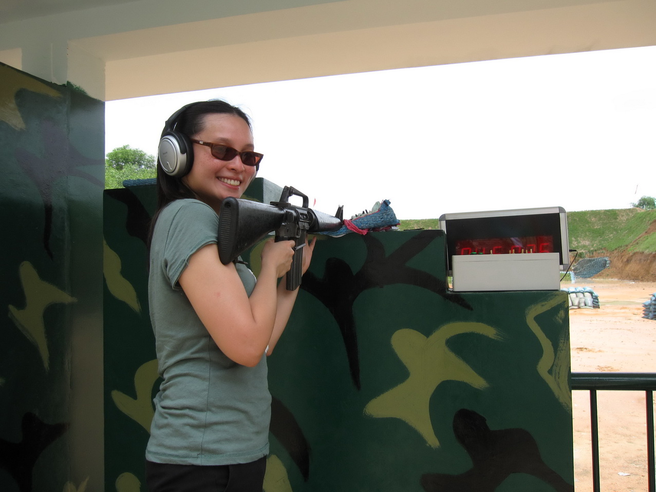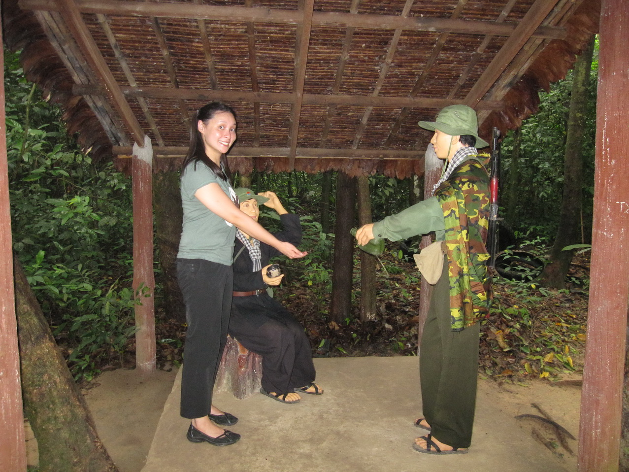 The Cu Chi Tunnels also had other photo opportunities. There was a helicopter, and Mr. Selfish and I both decided to try our hand at shooting M-16’s. We weren’t good at it.