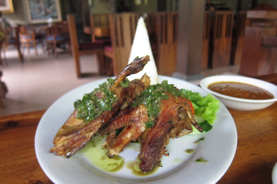 We also had delicious crispy duck from Bebek Bengil a/k/a the Dirty Duck Diner. I’m not sure if crispy duck is distinctly Balinese but it was certainly tasty. I preferred the original crispy duck to the one with green herb paste.