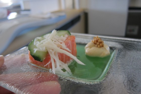 Perhaps even crazier than the luxurious amounts of room in the cabin (the ceilings must have been vaulted) was the food. I counted no less than 5 courses, including an amuse-bouche and a caviar platter.