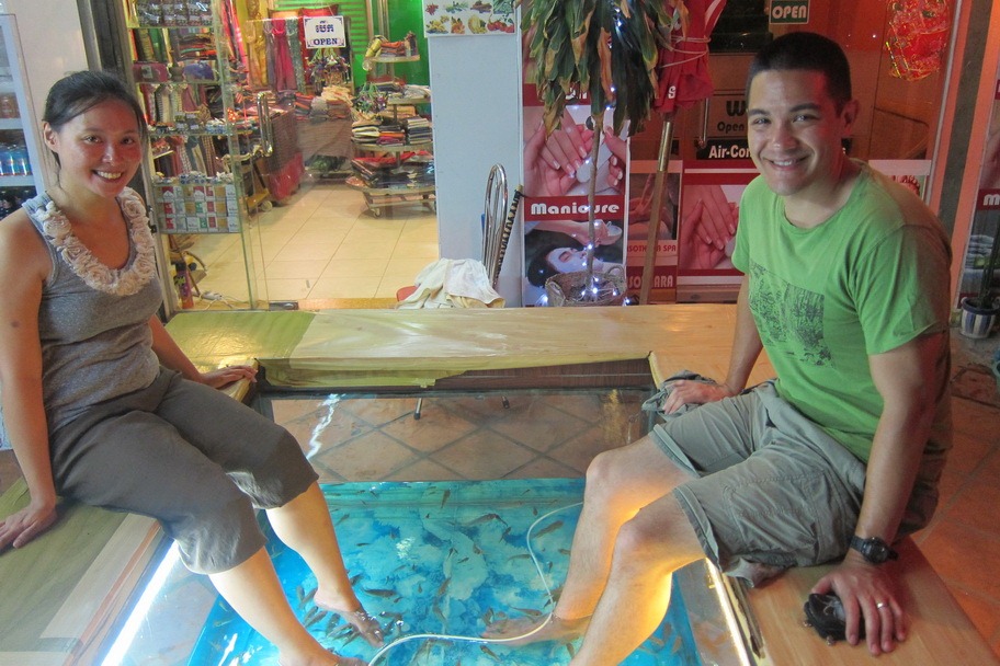 We also tried the fish spa. It was only $3USD for 30 minutes. The sensation took a while to get used to but the fish certainly ate dead skin off my feet. It didn’t hurt; it just felt really weird to have fish gnawing at your feet’s dead skin.