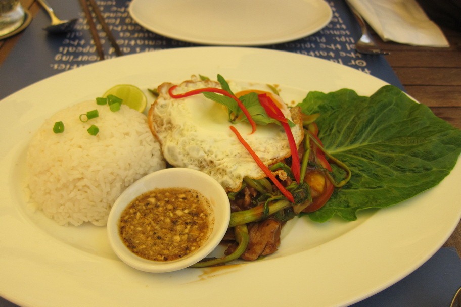 Although I generally found Cambodian food to be a little sweeter than I would like, I really enjoyed our meal at Haven. We had the banana flower salad, fried calamari, and lok lak (stir-fry beef in a brown sauce with an egg). The lok lak reminded me of bo luc lac, which is Vietnamese shaking beef. I liked the lok lak, but of course, I am more fond of bo luc lac. Mr. Selfish enjoyed the Anchor beer, not to be confused with Angkor beer.