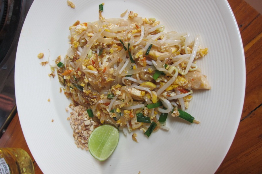 Mr. Selfish and I made pad thai and pad si eew, which is made with soy sauce and broad rice noodles. The pad thai was surprisingly simple and did not include any ketchup. My parents have already demanded that we make pad thai for them when we return to the States.