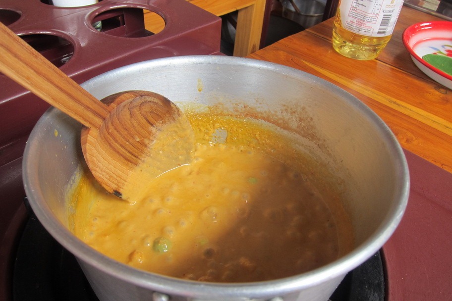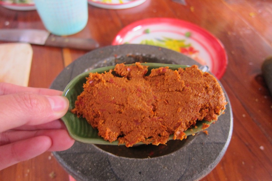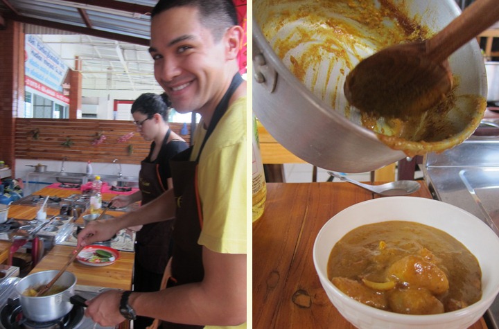 The most interesting thing that we learned to cook was the curry paste. Mr. Selfish and I had never made curry paste from scratch before. Suffice it to say, it requires a lot of fresh ingredients and a great deal of exertion with the mortar and pestle. Mr. Selfish made massaman curry, and I made panang curry. Both were delicious, but Mr. Selfish’s massaman was very spicy!