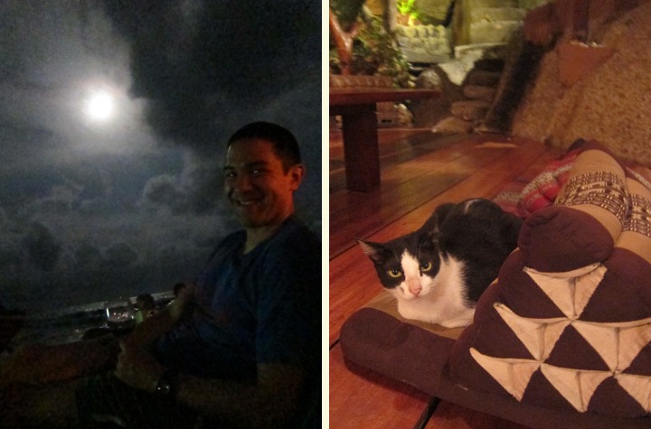Finally, on Tuesday nights, the Sanctuary shows a film on the beach. We watched “Amelie,” which we had just re-watched while we were in Paris a few months ago. It’s definitely one of our favorite movies, and it was nice to watch it during a full moon on the beach. We also made friends with the many spoiled cats at the Sanctuary.