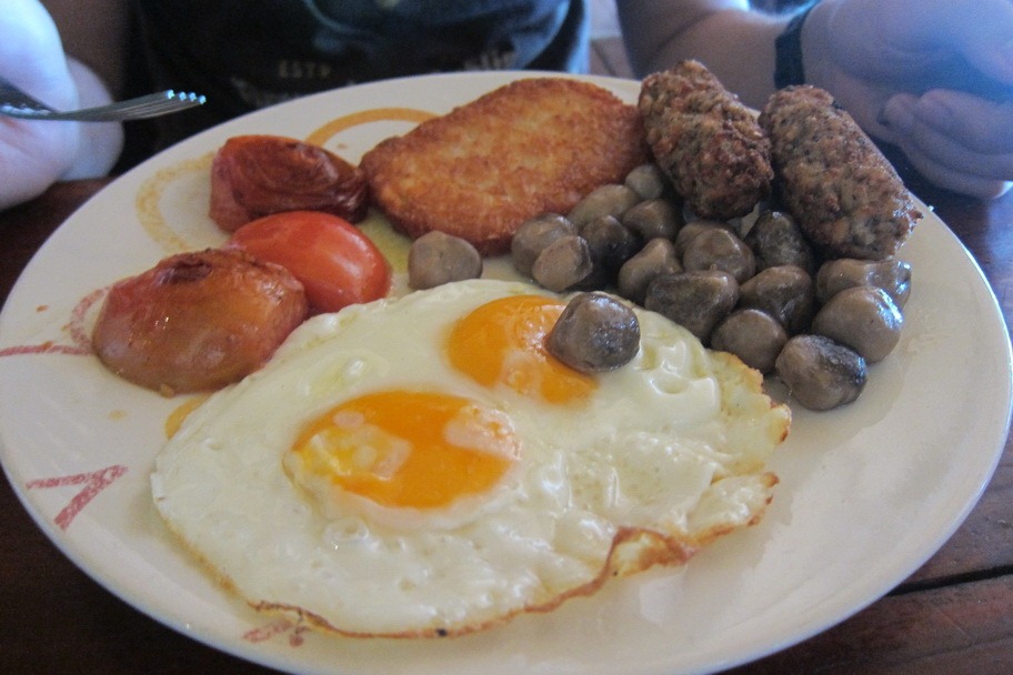 Our yoga instructor, Jamie, is originally from London, and he told us that the Sanctuary had delicious scones. Mr. Selfish was keen to try it and although it was tasty, there was no clotted cream. We also tried the English breakfast, which was also entirely vegetarian.