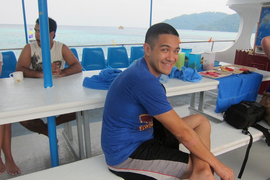 Our other diving experience in Thailand was at the Sattakut Wreck at Koh Tao and the Twins. It was a smooth diving experience, and Mr. Selfish and I did an advanced deep water dive to about 100 feet. However, there wasn’t much to see underwater. The coral was very lackluster compared to Richelieu Rock. We did see a sea snake, a scorpion fish, and another Moray eel though.