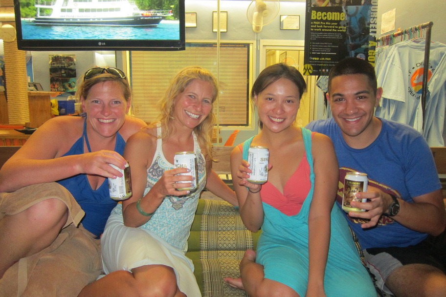 At least, we had a beautiful sunset from the boat, and we made friends with some Americans from San Diego. Once we got back to shore, the dive company gave us some beers to compensate for the lost hours of our lives.