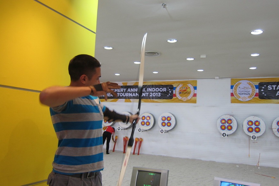 The activity for which Mr. Selfish and I opted in Times Square Mall was archery. I had never shot an arrow in my life, but after reading the entire Hunger Games series, I figured I could be up for it. We were both pretty bad but it was fun.