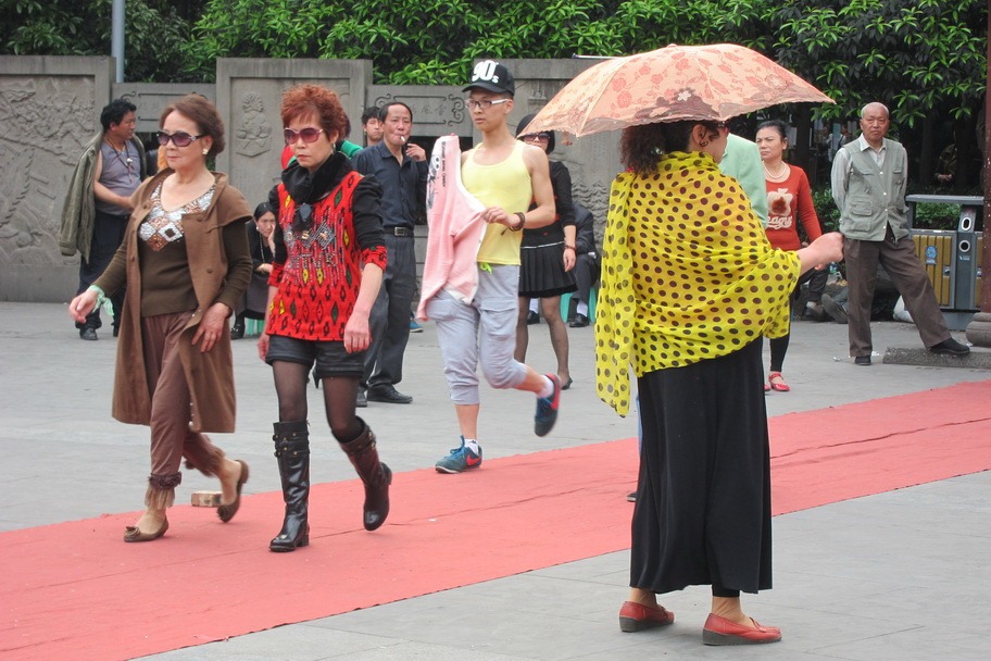 Finally, we went to the People’s Park, which is the best place to observe the locals. We saw many older ladies and gentlemen hanging out in groups. We ran into about a dozen people doing some kind of line dancing, and I attempted to participate. We even witnessed an impromptu fashion show where the same “models” (without changing their clothes) just kept going up and down the runway.