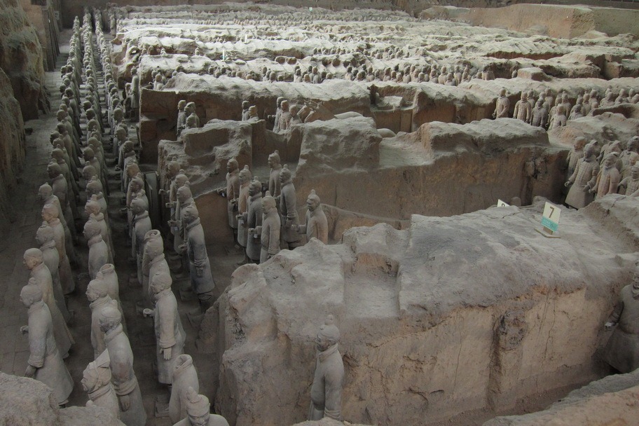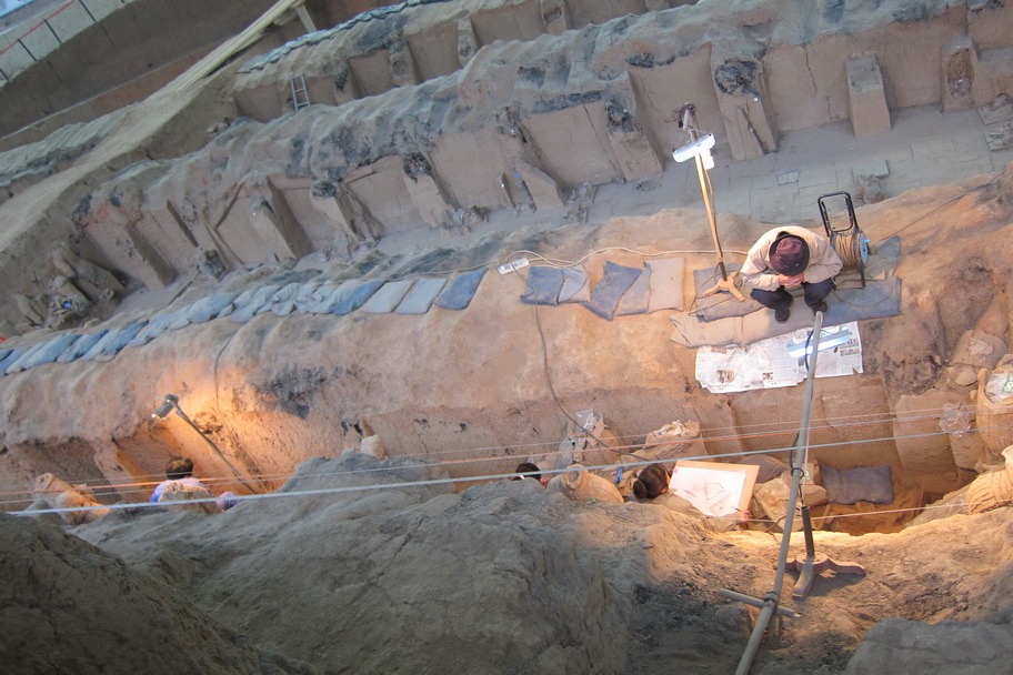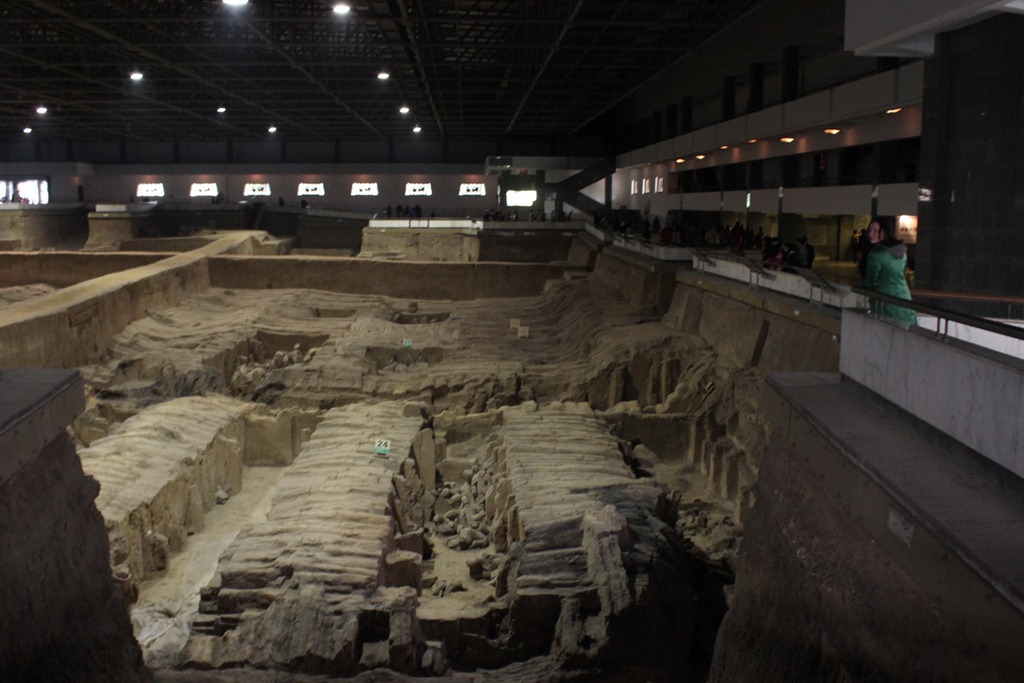 Areas of pit 1 are still being excavated. Also, you can see where the first farmer came upon the soldiers in the second photo (the white and red arrow sign). It must have been pretty dramatic to be the first one to find them.