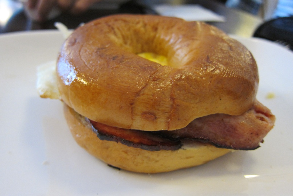 We showed up a little late in the afternoon and they only had cinnamon raisin bagels left. I still enjoyed my egg and bacon bagel sandwich though.