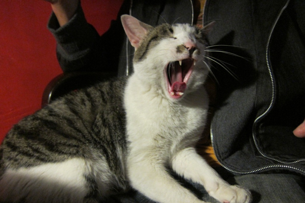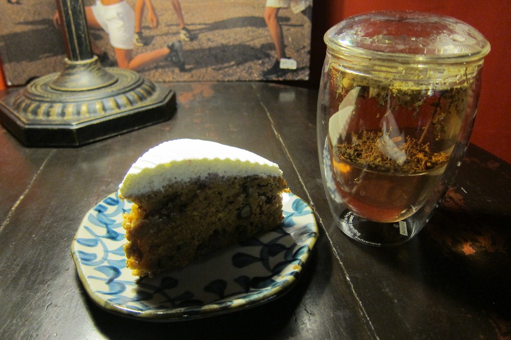 We had some delicious tea and a very moist slice of carrot cake. The café’s fat cat found Mr. Selfish’s lap to be a suitable napping location.