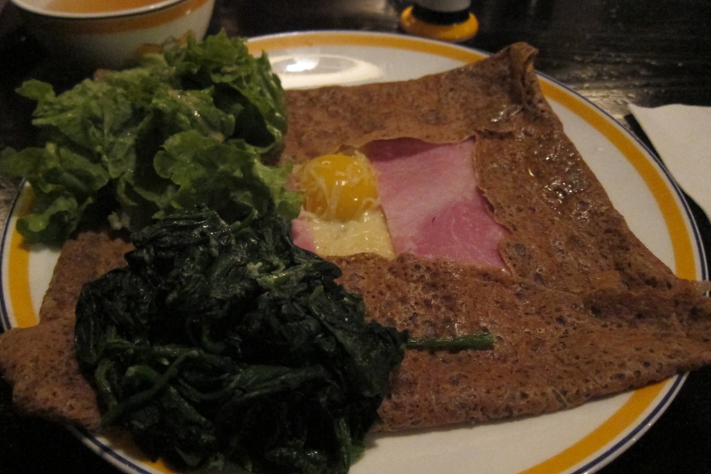 We ordered savory galettes. Mine had ham, cheese, and an egg. Mr. Selfish ordered the raclette galette, which the most expensive galette on the menu. He wanted to relive his favorite raclette sandwich from London’s Borough Market. His galette wasn’t that good but it was pretty good.