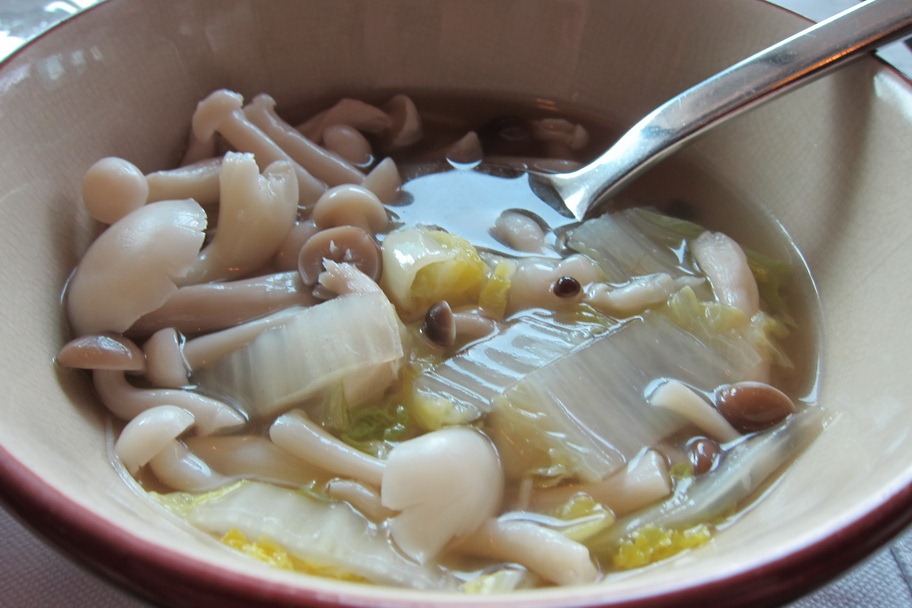 Mrs. Selfish quickly became obsessed with their breakfast soup, which she customarily packed with tofu, mushrooms, and greens – delicious.