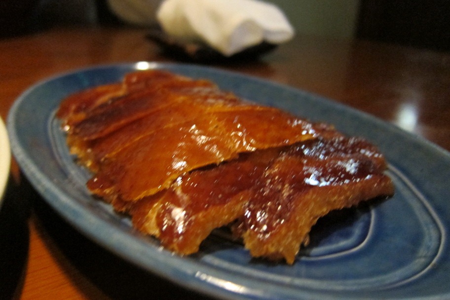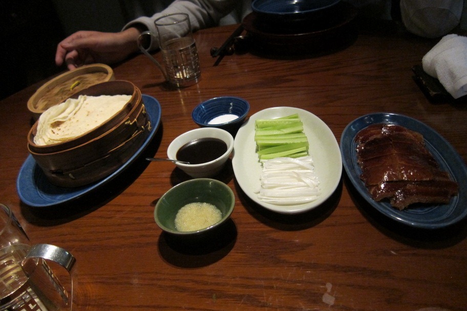 The duck was cooked expertly. The skin was crisp but the meat was still moist. Each bite was exquisite. The duck cost 298 yuan (plus a 15% service charge) and included the condiments.