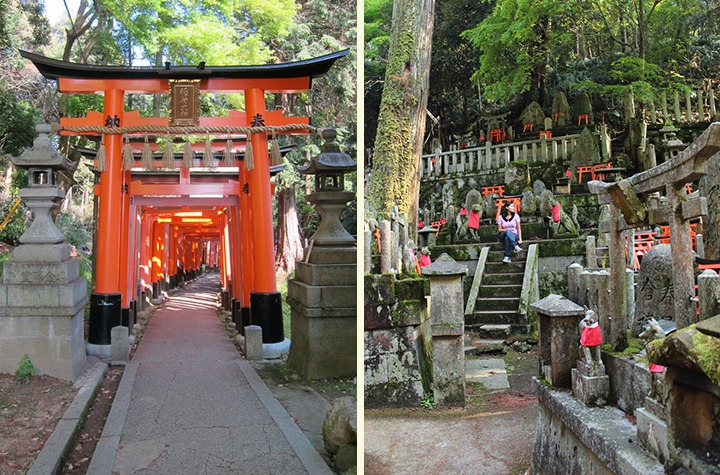 My personal favorite, the Inari Shrine, is a great shrine for walking, taking about 3 hours at a leisurely pace. This is a shinto shrine to the god Inari, who is the god of prosperity and is usually marked by orange-red torii gates. Roughly 1/3 of all shinto shrines are to Inari.