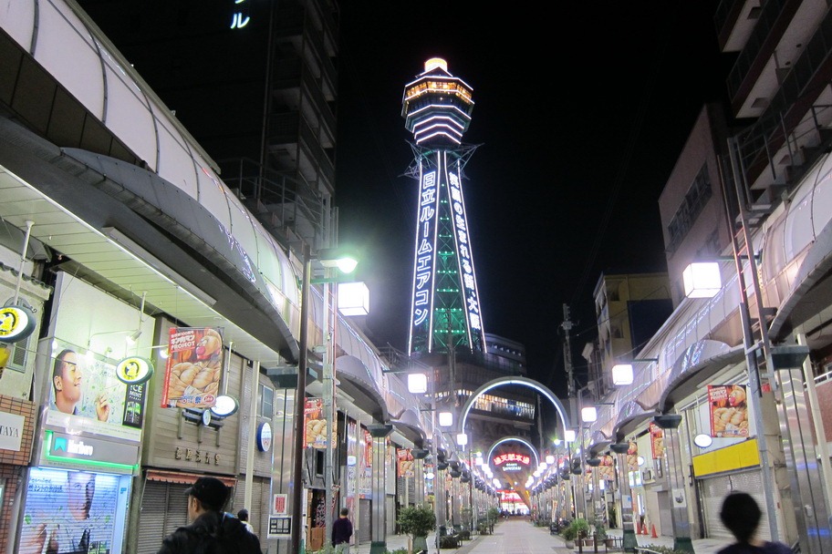 To close out the evening we headed over to Tsūtenkaku Tower. Originally built in 1912, it was the tallest building in Asia. During World War 2, it was scrapped for its steel, and was reconstructed in the 50’s. Now it’s a chintzy building filled with good-luck idols, and a pocky store.