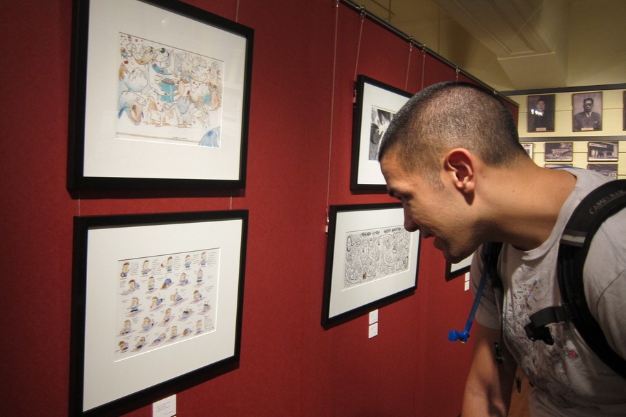 My favorite temporary exhibit was on a project known as Sketchtravel. In this project, a sketchbook traveled all over the world to 71 different artists, who all sketched on one page and then passed it by hand to another artist who would do the same. All of the pages of the sketchbook were subsequently auctioned off for charity. It was interesting to see the very different sketches of all of the artists.