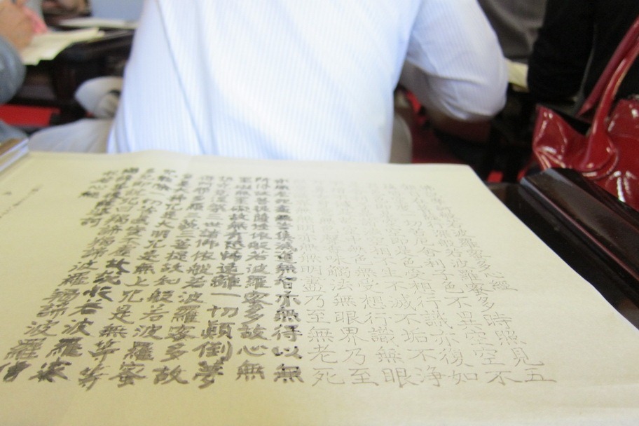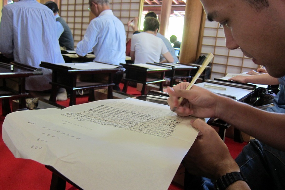 Surprisingly, this wasn’t even the most difficult part of the Moss Temple. After paying the steep admission, you sit at a low desk on the ground and are required to copy a sutra prior to entering the moss garden. During the copying, there is monk chanting, which I found quite soothing. After you finish copying the sutra, you write your name, address, and a wish to the left of the paper. Then, you take the sutra paper up to the altar and go into the moss garden. The monks keep all of the sutras and are supposed to pray for everyone’s wishes.