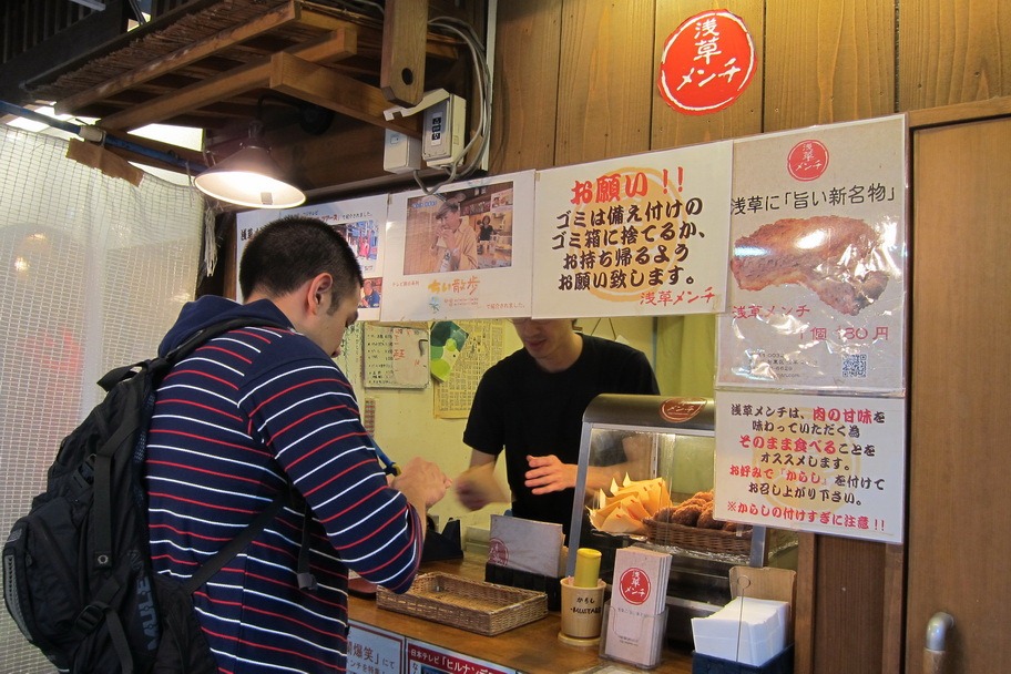 The last time we were in Asakusa, we happened upon a stand selling delicious meat patties. We tracked down the same stand and had one for old time’s sake. It was just as savory and delicious as we remembered.