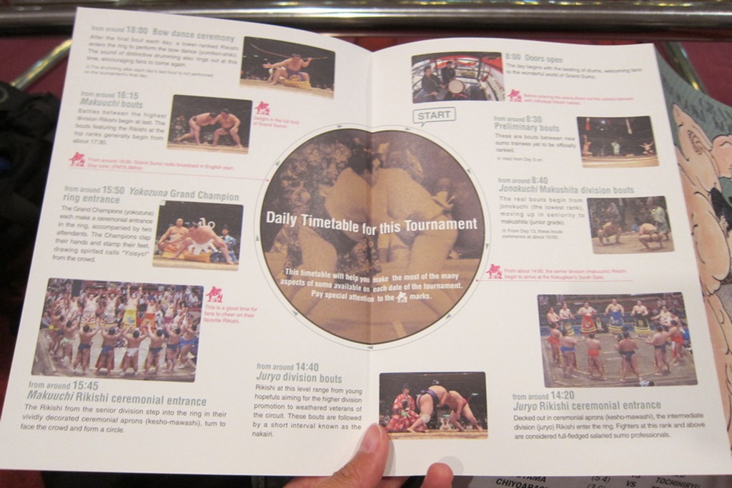 Sumo is an all-day affair, starting around 8am and ending at 6pm. The day is divided up by matches between wrestlers of different tiers starting in the morning, with the time in between filled with various traditional ceremonies.